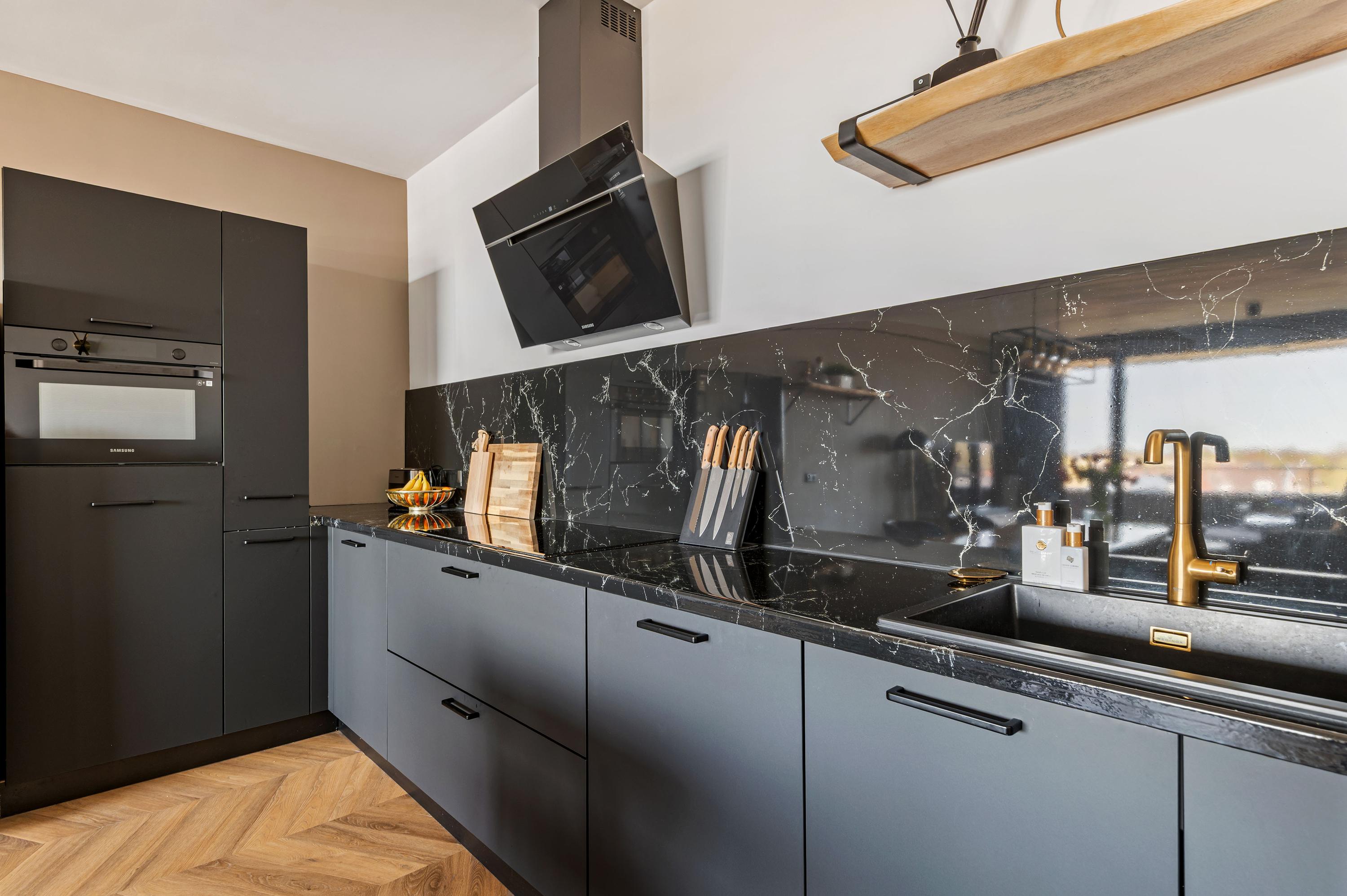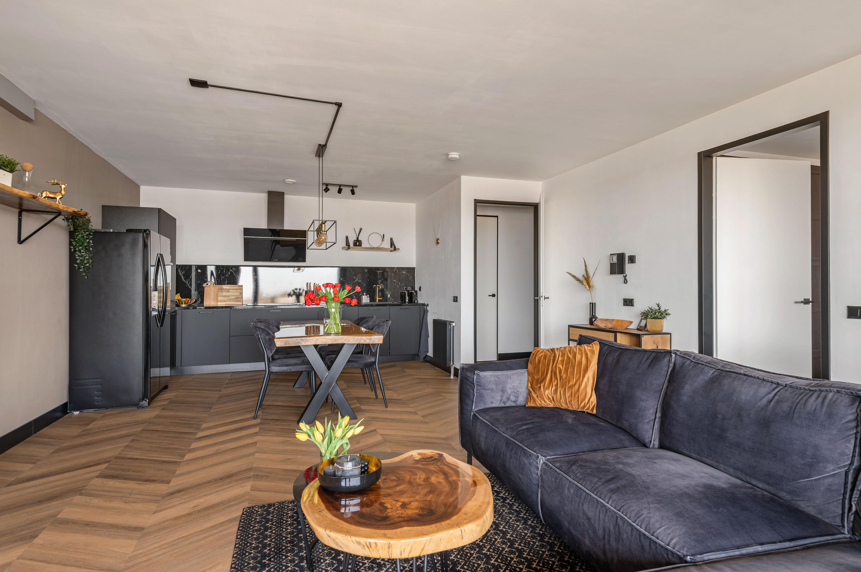 Via de centrale entree met lift bereik je de derde etage. Entree in de hal met toegang tot de meterkast, het in 2021 vernieuwde separate toilet en een praktische berging/technische ruimte waar de wasmachine en droger netjes zijn weggewerkt. De woonkamer is van goed formaat en het gehele appartement is voorzien van een fraaie PVC-vloer. De in 2021 volledig vernieuwde open keuken sluit hier goed op aan en is uitgerust met diverse inbouwapparatuur, waaronder een inductiekookplaat, combi-oven, vaatwasser, afzuigkap en een koel-/vriescombinatie. De slaapkamer is van goed formaat en biedt voldoende ruimte voor een groot bed en kastruimte. De in 2021 vernieuwde luxe badkamer beschikt over een stijlvol wastafelmeubel en een ruime inloopdouche.